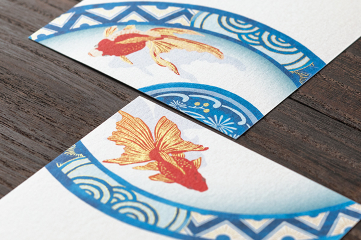 ポストカードの素材には、越前和紙を使用。丁寧に紙漉きされた和紙ならではの質感が、金魚の絵の趣きをより一層高めています。 和のテイストを意識するなら、筆ペンを使って暑中や残暑のお見舞い文を添えてみてはいかがでしょうか。