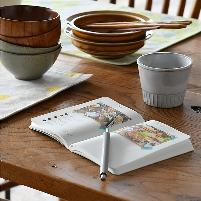 丈夫な布クロスの表紙や、角がつぶれにくくページがめくりやすい丸まった手帳角など、長く愛用できる工夫が詰まっています。192ページとページ数はたっぷりありますが、180度に開くので紙面がフラットな状態で使えますよ。