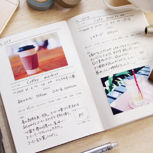 こちらは、会社帰りに立ち寄ったコーヒーショップで購入したものを記録したコーヒーノート。コーヒーの淹れ方や感想を添えると、より理解も深まりますね。