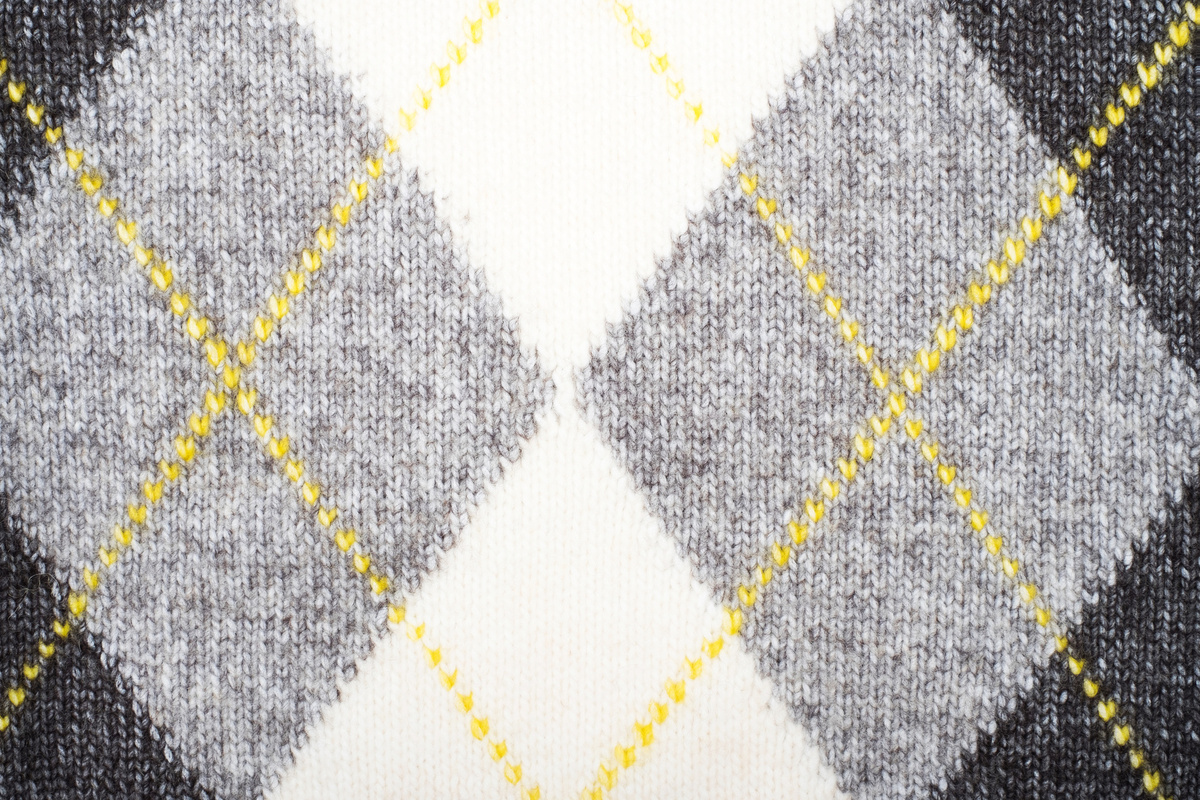 アーガイルチェックとは、その名の通りスコットランド・アーガイル地方の伝統的なチェック柄のこと。菱形と斜めに入った細いラインで構成されているのが特徴です。