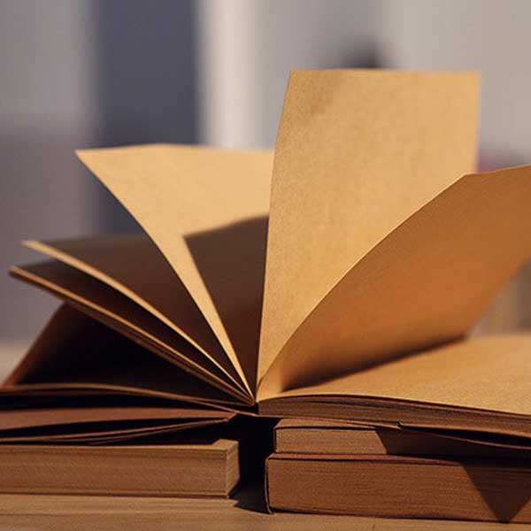そもそも「クラフトノート」とは、クラフト紙を材料として作られたもの。製作過程において「漂白」の工程を省いているため、一般的なノートに比べ頑丈で、素材本来の色味と質感を楽しめるのが魅力です。ドイツ語の「kraft(=力)」が名前の由来なんですよ。
