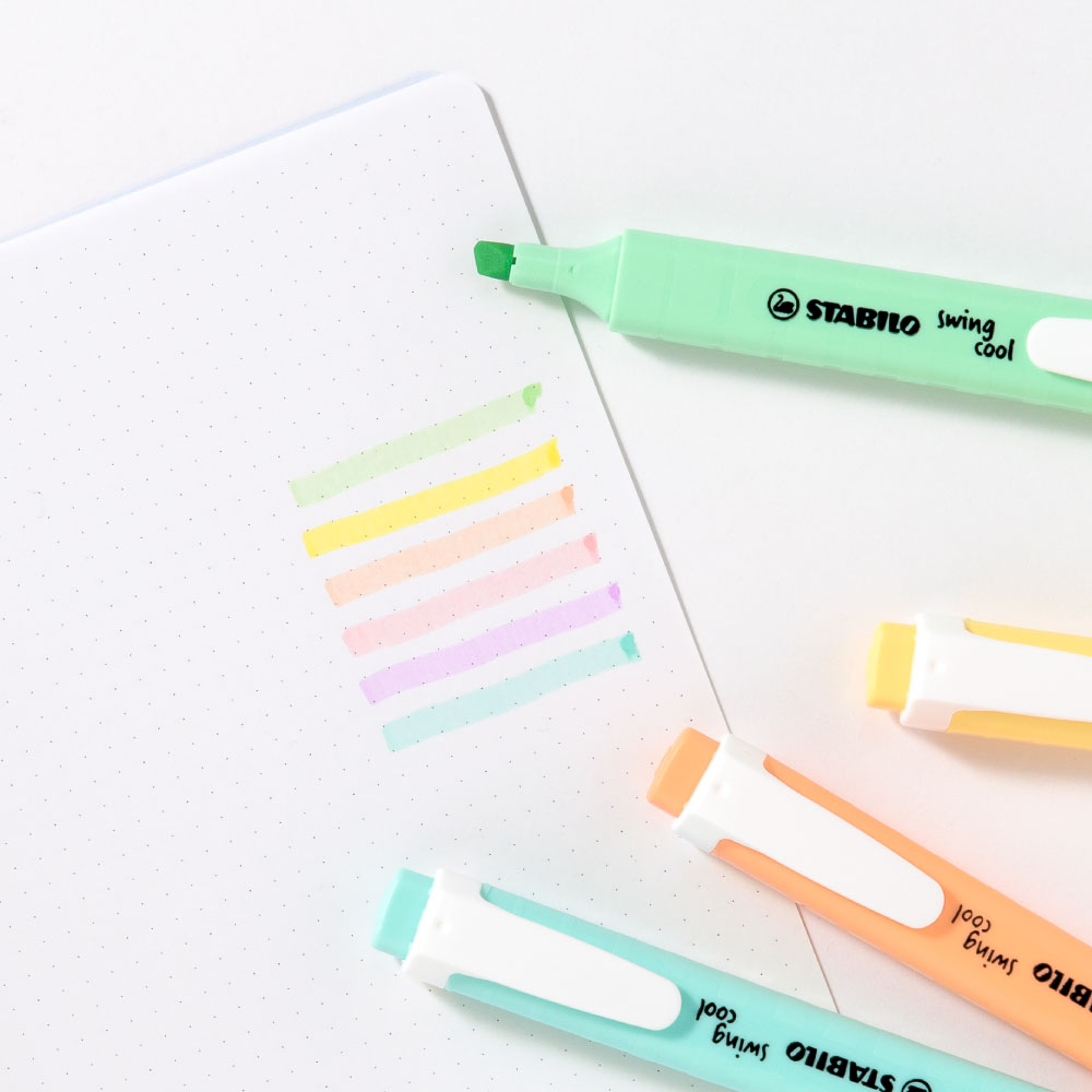 こちらのようなパステルカラーの蛍光ペンなら、より目に優しくておすすめです。柔らかい色味なので、かわいいイラストやデコレーションにも◎。