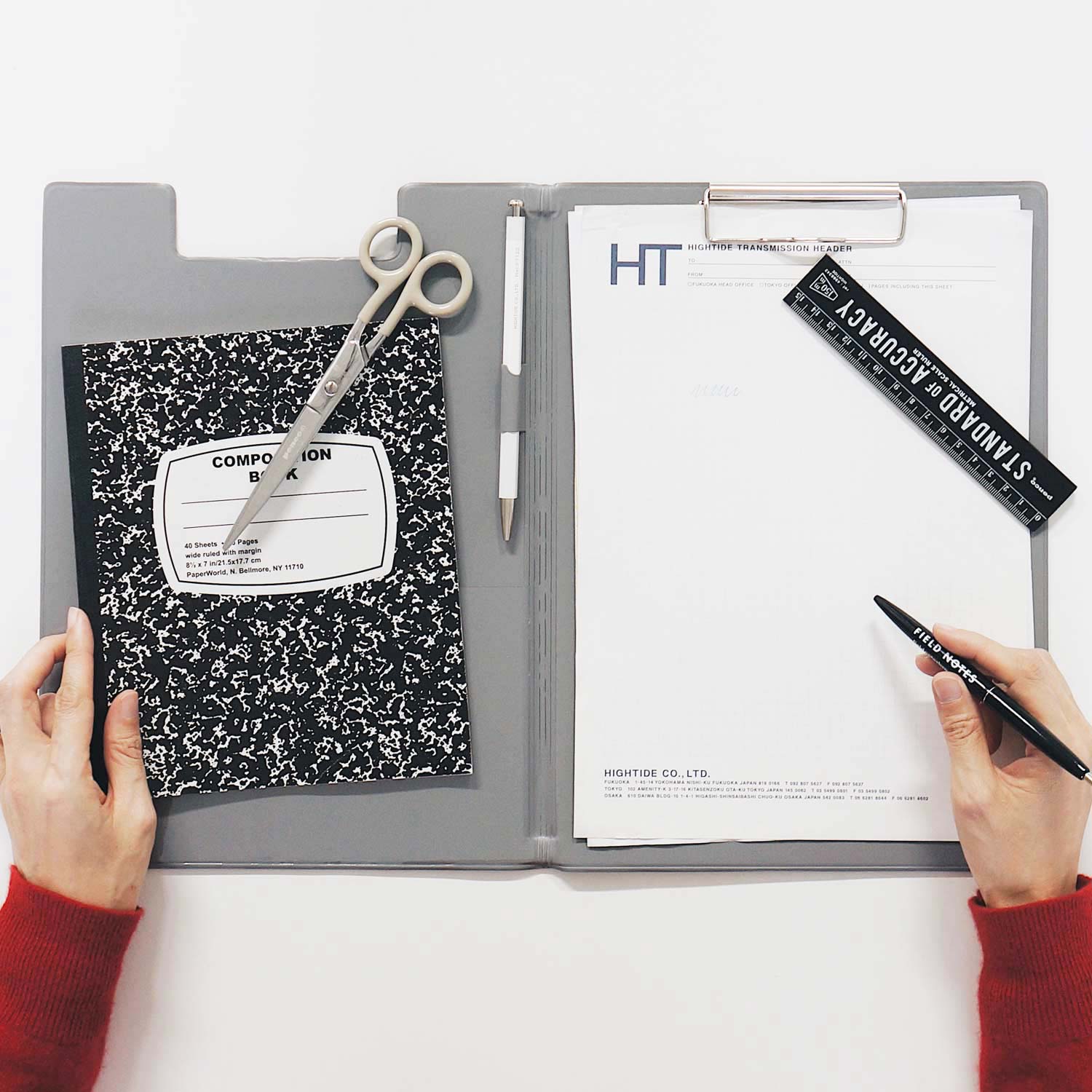 このクリップボードに必要な書類やペンをひとまとめにして、取引先や会議室への移動をスマートにこなしてみて。折り返せば立ったままの筆記がしやすいので、机が無い場所やとっさにメモを取りたいときにも活躍しますよ。