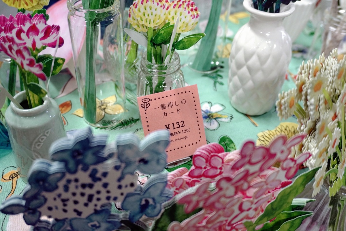 こちらはPaper messageさんの一輪挿しを模したカード。お花畑のような一角に思わず足を止めました。花の場所にメッセージを書くのかな…?飾るだけでも良さそう!と、使い方の想像が膨らみます。