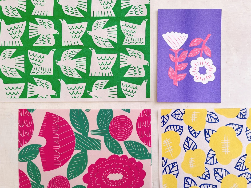 凝ったイラストレーションはパッと見の印象が華やかなだけでなく、見れば見るほど魅力的。中でもお気に入りは、ピンクの"ohana"、鮮やかなグリーンの"Paper birds"、黄色いお花の "Hanayo"です。