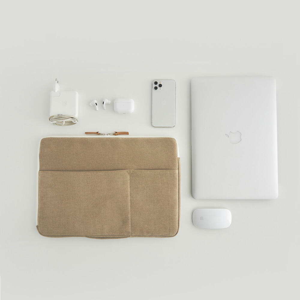 大人っぽい落ち着きとナチュラルな雰囲気が好きな方には、こちらの「ithinkso(アイシンクソー)」の「PEACH LAPTOP POUCH」がおすすめ。コットンの無光沢な風合いや、さりげない革製のジッパーフックが優しい雰囲気を作り出しています。