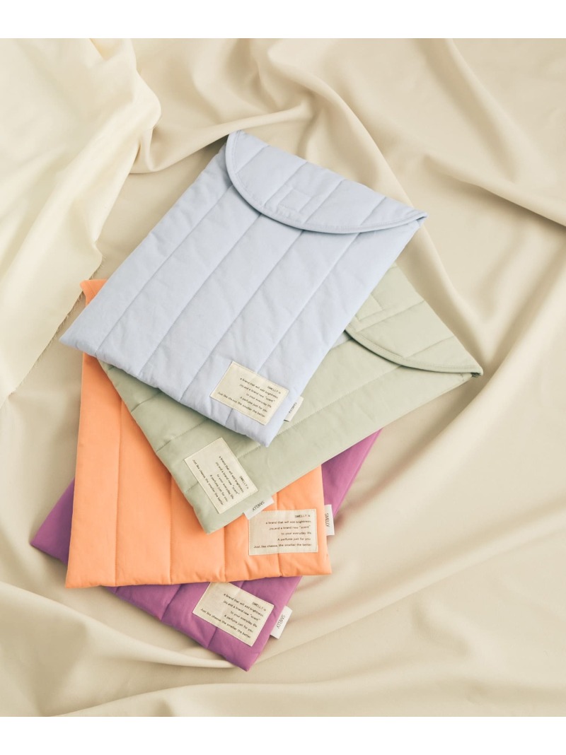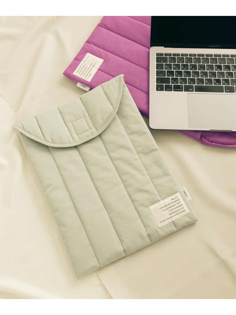 こちらは、「SMELLY(スメリー)」のPCケースです。PCケースとは思えない、愛らしいくすみカラーが魅力的。縦にラインの入ったキルティング生地は、ノートパソコンの保護だけでなくスマートな印象も与えてくれます。
