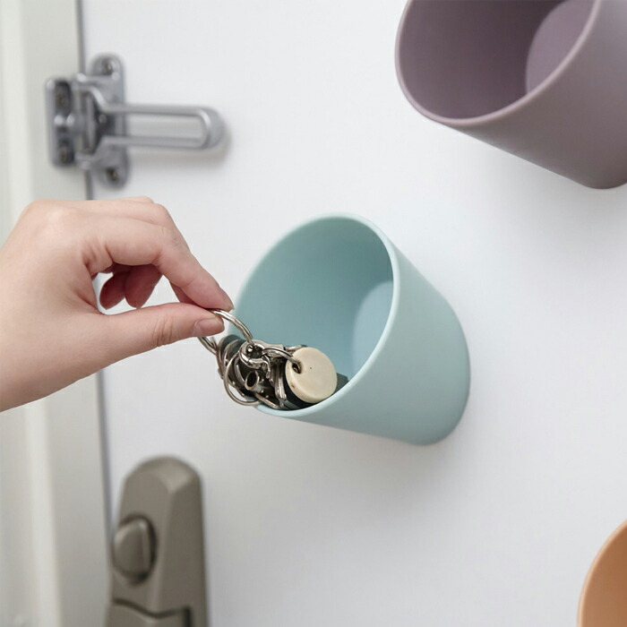 「Decuppo(デカッポ)」は、デザインスタジオが手掛けるオリジナルブランド「ideaco」の収納グッズです。一見するとシンプルなプラスチックカップですが、底面には強力なマグネットが搭載。デスクの引き出しやオフィスのドア、ホワイトボードなど、磁石が付くちょっとしたスペースを活用して小物の収納ができるんです。物をしっかりと受け止め、出し入れしやすい傾斜がついたフォルムが特徴。