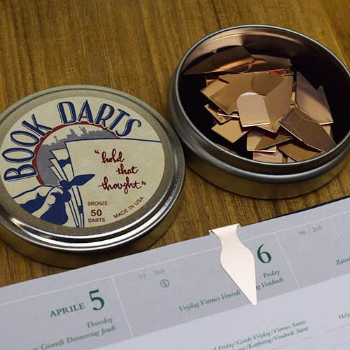 薄くてかさばらないダーツは、真鍮・ブロンズ・ステンレスの3種類から選べます。3色ミックスのタイプなら、色ごとに使い分けることでさらにマーキングがはかどりそうですね。ブックダーツで一つひとつ丁寧に、言葉を拾い集めてみませんか。