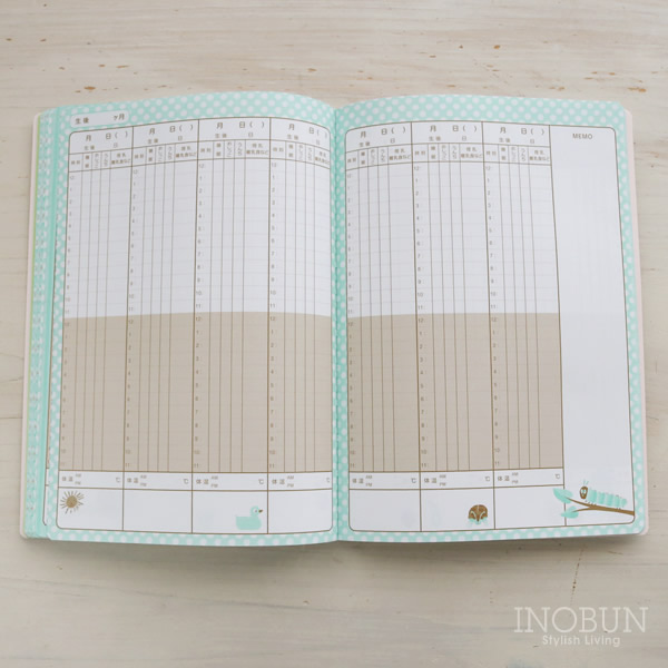 こちらは、クマさんが自転車に乗ったイラストがかわいい育児日記です。刺繍の要素を取り入れて温もり溢れるデザインにホッと癒やされますね。日記に使われている紙は、MD用紙を使っているためにじみや裏抜けがしにくく、いろいろな筆記具が使いやすいのもおすすめのポイントです。