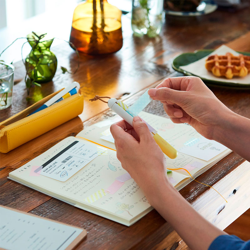 ペンケースやポーチにさっと忍ばせて、外出先でも気兼ねなく、お気に入りのマスキングテープとのひと時を過ごしましょう。