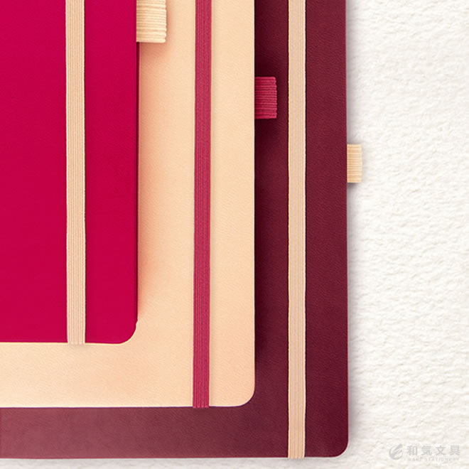 このノートの魅力は、デザイン性の高さだけではありません。中紙は横罫と方眼罫の2タイプが1冊にまとまっており、カラーは目に優しいアイボリー。さらにゴムバンドやペンホルダー、マチ付きのポケットも付いていて、機能性も抜群なんです。