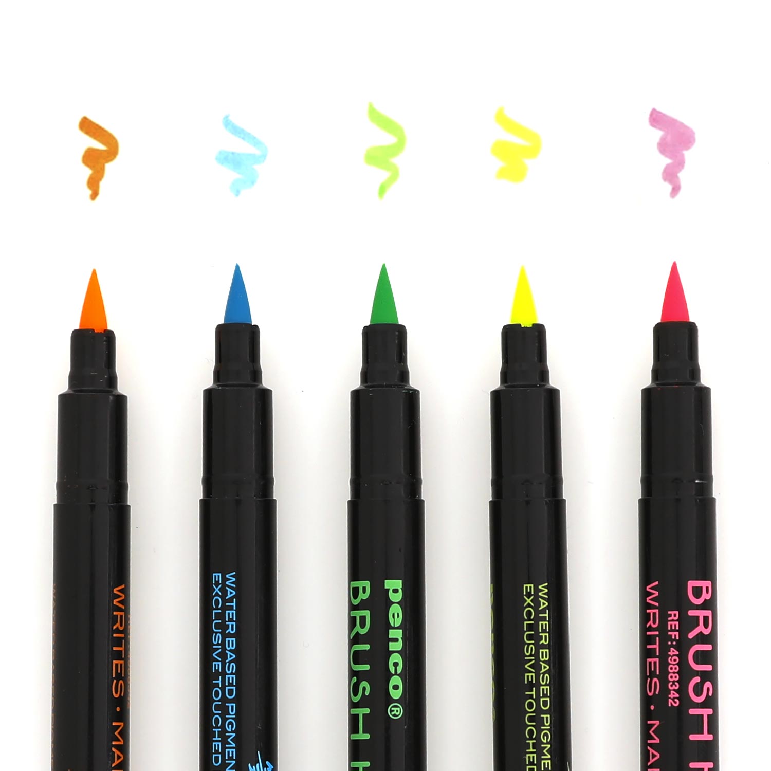 「penco(ペンコ)」の「ブラシハイライターセット」は、国内の老舗筆メーカーと作り上げた筆タイプのカラーペンです。こちらは蛍光タイプのものでピンク、イエロー、オレンジ、ブルー、グリーンの5色がセットになっています。