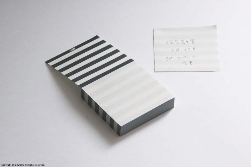 はっきりとしたボーダーがある、裏面にメモを書いてももちろんOK。独特のデザインなので、固定観念にとらわれず、好きな使い方ができそう。あなたはこのブロックメモにどんなインクを使って、何を書きますか?