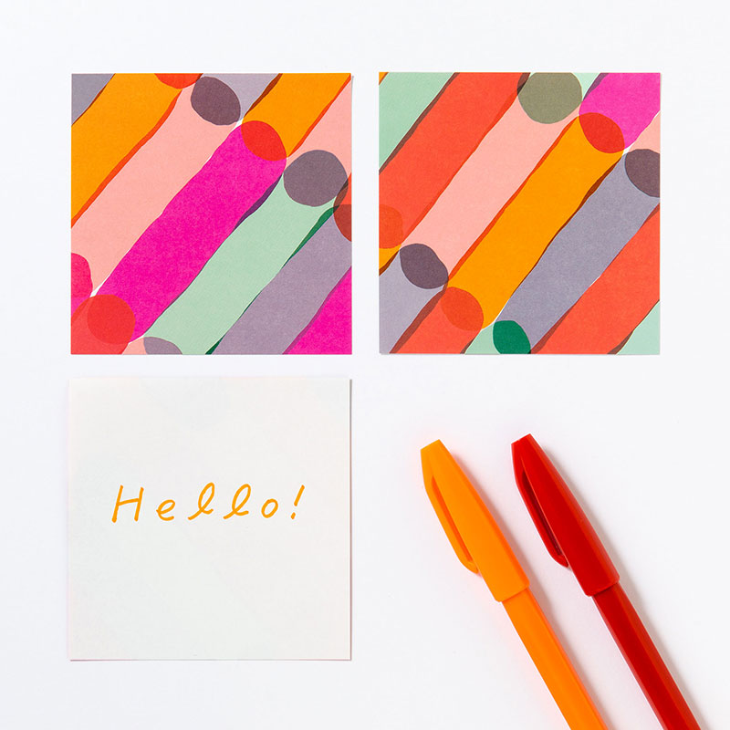 メッセージは裏面の白紙部分に書き込めるので、メモの読みやすさも心配なし。表面のカラフルなデザインがふいに見えた瞬間のギャップも味わえる、素敵なブロックメモとなっています。職場の同僚や友人など、たくさんの人に添えるメッセージに使って、そのときめきをお裾分けするのもおすすめです。