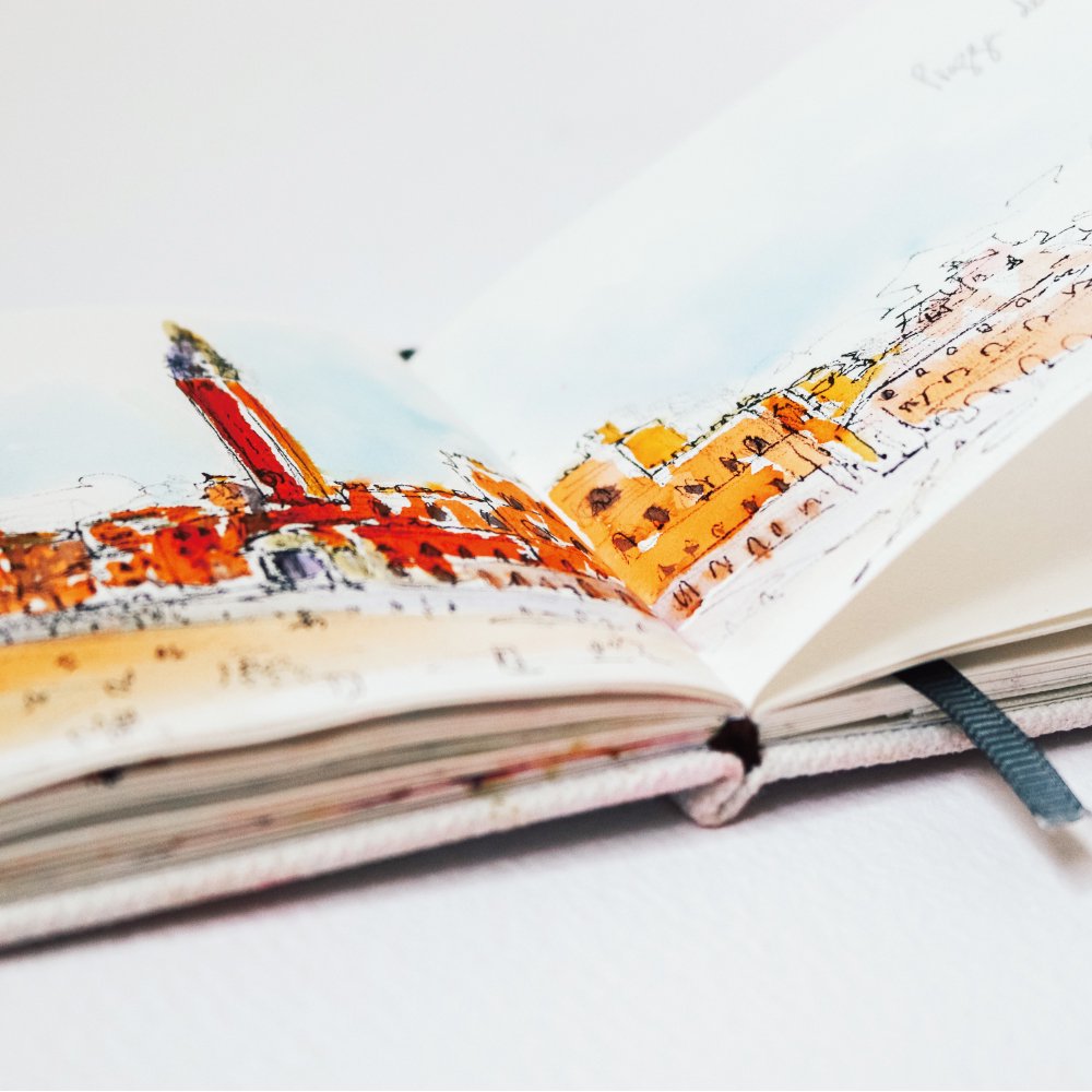 スケッチブックをカバンに入れて出かければ、心惹かれた風景をその場で描くことができます。こちらの投稿に写っている右側の絵は、飛行機から見えた風景を描いたのだそう。描き手の視点や感性が伝わってきて、写真とはまた違う魅力がありますよね。
