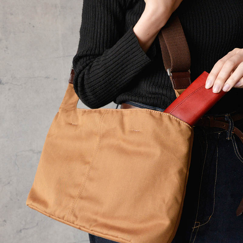 鞄の中で邪魔にならない、スリムでコンパクトなサイズ感。小さいペンケースですがホック式で大きく開くので、ストレスなく中身を取り出せます。内側には滑らかなシルキーセミスムースレザーを使用し、ペンも傷付きにくい工夫がされています。
