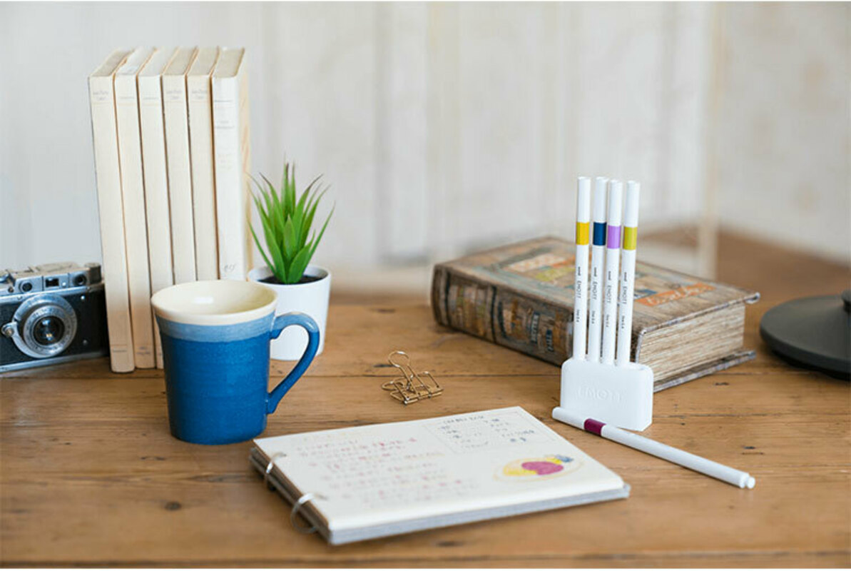 水性サインペンというと、「滲みやすそう」「書きにくそう」なんてイメージが浮かびがちかもしれません。EMOTTは、カラーペンに馴染みのない方にこそ試してほしいアイテムです。耐水性のインクを使っているから、滲んで読みづらくなる心配もなし。また、ペン先をカバーしてつぶれにくいように作られています。ラインマーカーとしてはもちろん、細かい文字まで書けるカラーペンって便利ですよね。