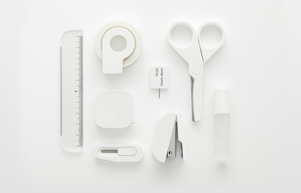 はさみはシンプルで持ちやすいデザイン。カッターやホッチキス、テープといった場所を取りやすい文具はコンパクトに。また、のりにメジャー、カッティング対応可能な定規など、「ちょこっと工作」に応用できるラインナップがたまりません。