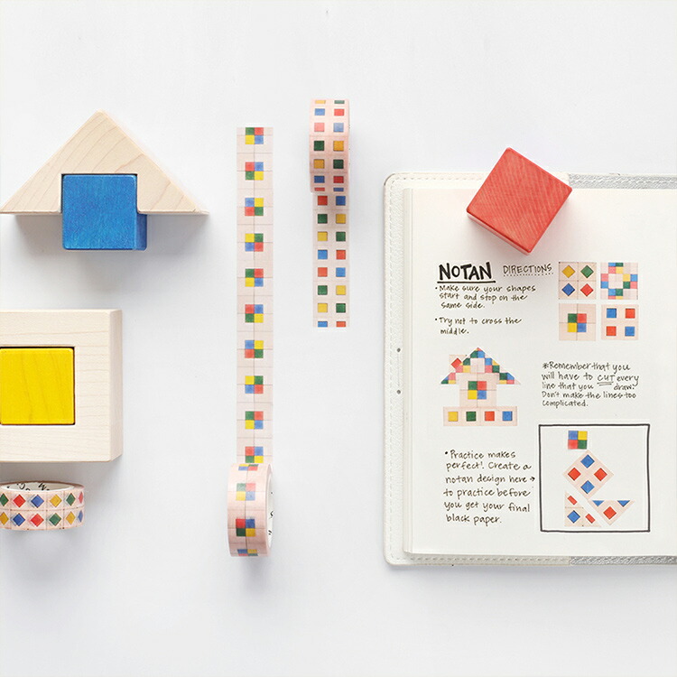 4種類の柄を使い分けて、自分で積み木を組み立てたかのような気分を味わいましょう。素朴だからこそ、シンプルにノートや封筒を活かすアクセントになってくれます。また、お子さんのいる方にcubicoloを贈るなら、このマスキングテープでお揃いのメッセージカードを作ってみても素敵ですね。