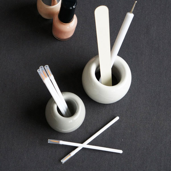 こちらは、よく使う文具の置き場所にぴったりなスタンド。コンパクトなサイズなのでデスクの上で場所を取らず、お気に入りのペンなどをおしゃれに立てかけておけます。磁器ならではのつるんとした艶めきを引き立たせる、シンプルなデザインが魅力です。