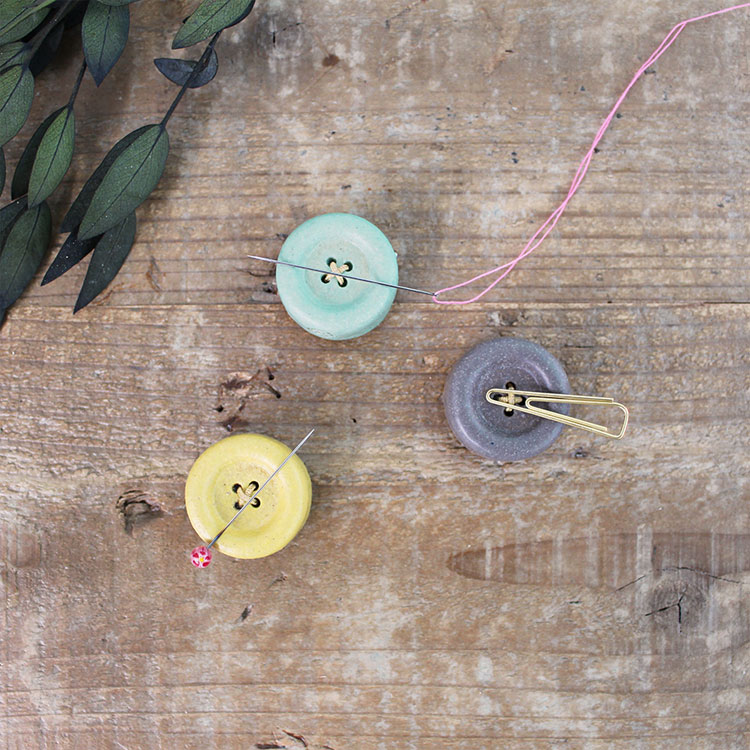 ボタンの裏にはマグネットが内蔵されているので、マグネットとして使うのはもちろん、デスクの上ではクリップクッションやピンクッションとしても使えますよ。四季の移ろいが感じられる全5色のカラーバリエーションの中から、今の気分にぴったりな1色を選んでみて。