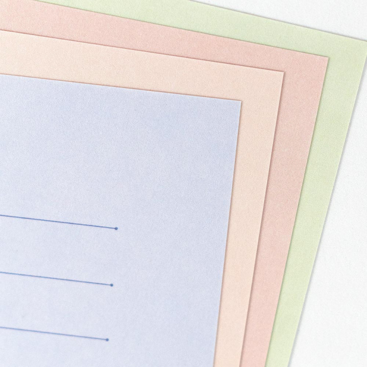 便箋はカラーごとにサイズが異なるのだとか。書きたいメッセージの量に合わせて便箋を選べるのがポイントです。また、複数枚にわたってメッセージを書きたいとき、異なったサイズの便箋をチョイスしても楽しそう。