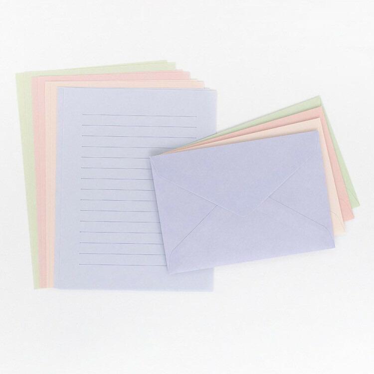 カラー展開は全部で6色。便箋も封筒と同じ配色となっています。この封筒におしゃれなデザインの切手を貼って郵送したら、ますますかわいさがアップしそうな予感。ちょっと遠いところに住んでいる友人や家族にこのレターセットで手紙を送ってみてはいかがでしょう。