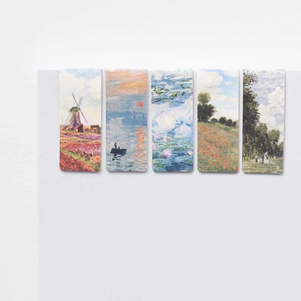 こちらは、「印象・日の出」を含むモネの5つの代表作がそれぞれデザインされた、マグネット式のしおりです。5枚で1セットになっているので、本のイメージや気分に合わせて使い分けたり、手帳やノートのインデックスとしても使えますよ。