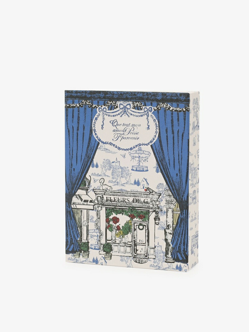 まずご紹介するのは、クラシカルな柄が目を引くこちらのボックス。中にはミニカードと封筒、ステッカーが入っており、一言メッセージを送るのに役立つセットです。デザインを手がけたのは、フランスの香り漂うスタンプを制作している「gobe」。ボックスの柄もフランスの街角を思わせますね。