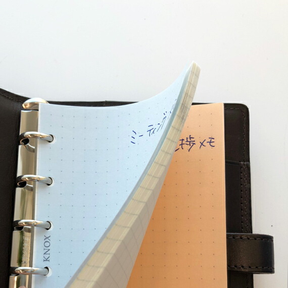 メモは5mmサイズのドット方眼なので、文字を書く際も、図やイラストを描く際もちょうど良いガイド役を果たしてくれます。ビジネスからにプライベートまで、使い勝手の良いリフィルです。