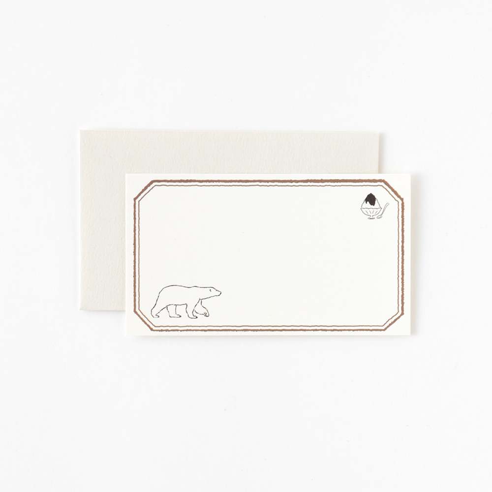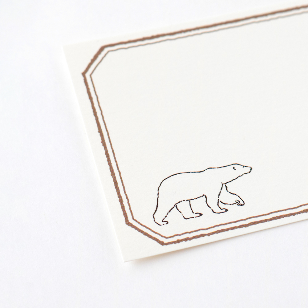 ステーショナリーブランド「GreenFlash」の「Animal Series」からご紹介するのは、シロクマのミニカードセット。のんびりと歩くシロクマと、かき氷がちょこんと描かれています。幼くなりがちな動物モチーフのデザインですが、こちらはモノトーンを基調としているため大人っぽくて◎。