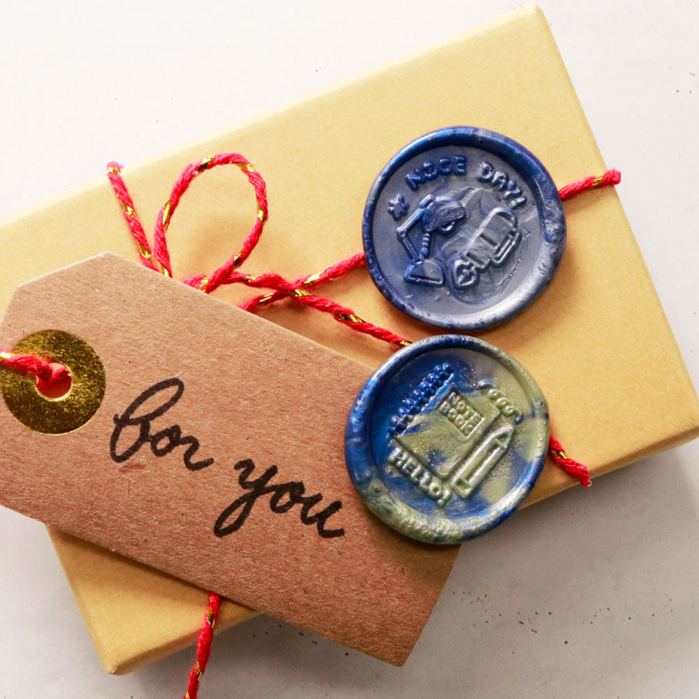 紙袋ラッピングのプラスアイテムとしておすすめなのが、シーリングスタンプ。ポンと押すだけで、シンプルな紙袋にオリジナリティが生まれます。