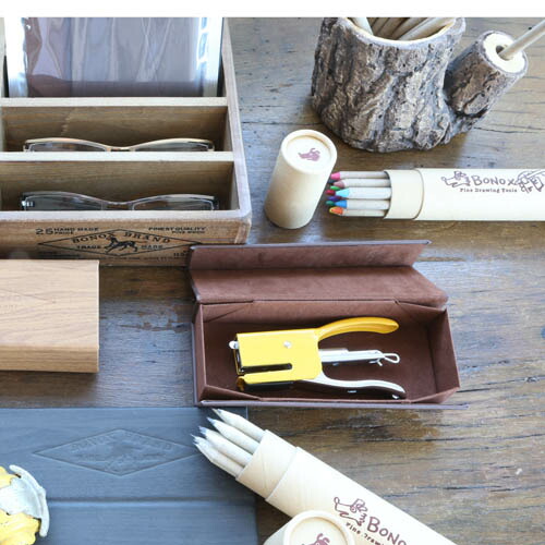 今回ご紹介するのは、犬の顔を思わせる、ユニークな形状のホッチキス。そのひょうきんでかわいい顔つきに、思わず顔がほころんでしまうはず。ボディを握ってみれば、手にしっかりフィットする心地良いサイズ感。持ち手上部にはBONOXの文字が彫られ、使っているときにもおしゃれなデザインが見えるのが嬉しいポイントです。